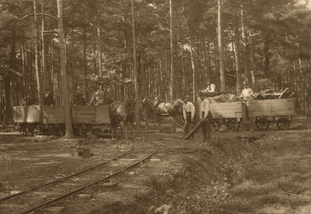 EXISTUJÍ FOTOGRAFIE, KTERÉ DOKLÁDAJÍ, ŽE UHLÍ TĚŽENÉ NA ŠACHTÁCH Z PROSTORU OSTROV-BOR, BYLO PŘIBLIŽOVÁNO LESEM PO KOLEJÍCH NA VOZÍCÍCH TAŽENÝMI KOŇMI (ZMIŇUJE SE KONKRÉTNĚ „VLÁČEK O DVOU VOZÍCÍCH NA JEDNOHO KONĚ“.). FOTOGRAFIE POŘÍDILA FIRMA DURAS ZŘEJMĚ NA OBJEDNÁVKU FIRMY „ABSOLON&PICH“ (NÁPIS ČITELNÝ NA BOČNICI) NĚKDY NA ZAČÁTKU DVACÁTÉHO STOLETÍ. TOLIK HOLÁ FAKTA.